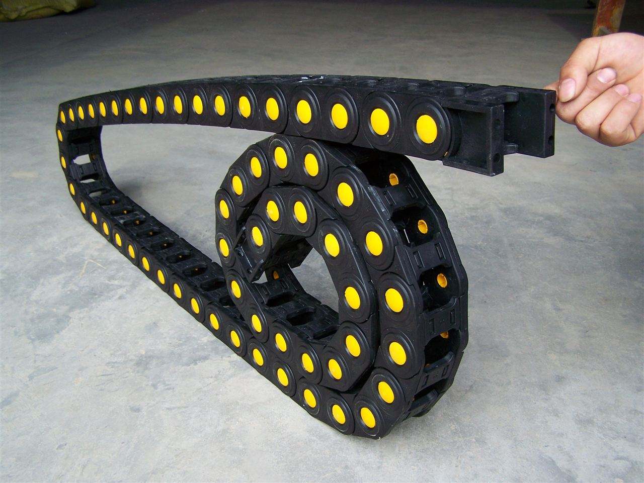 尼龍含量在5%~17%不等,在此范圍內尼龍含量越多就與玻璃纖維等其它原料結合的越好,其結構也在一個合理的范圍,這樣的尼龍拖鏈耐磨與強度可以發揮到最大作用。產品外觀細膩光滑,使用強度與耐磨性好,運行噪音也小。反之超過此范圍或低于此范圍,破壞了尼龍的臨界點,則拖鏈質量會差很多