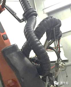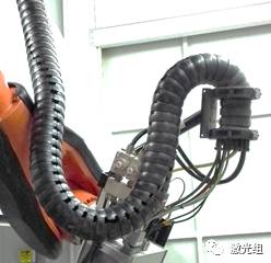 了解了這些相關數據,那么重點來了——當塑料拖鏈被彎折到最小半徑時,Suprafeed導絲管的最小半徑已經被突破(145 < 150)!例如下面圖示這種情況。在Holder附近和拖鏈回彎處很有可能出現導絲管過量彎折的情況。